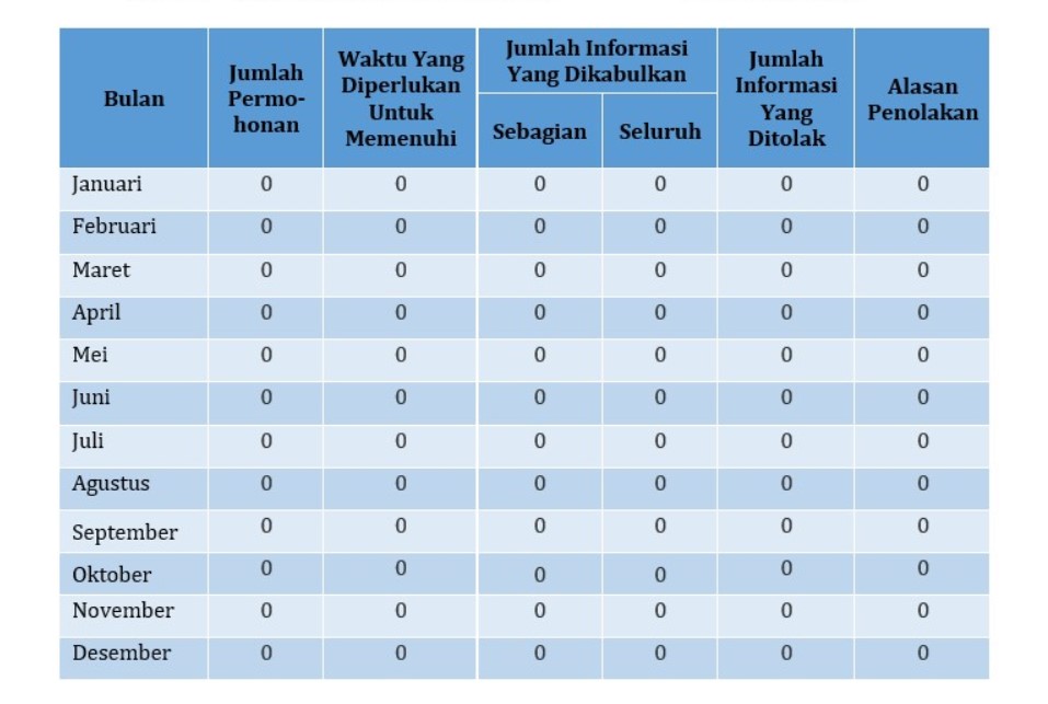 | Tata Cara Permohonan Informasi Publik | Memuat alur permohonan, syarat permohonan dan pengajuan keberatan |